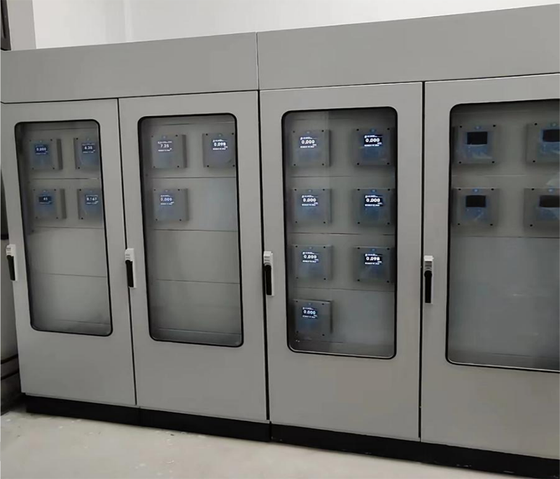 在此項目中,我司提供了一系列高質量原水、濾后水及出廠水水質在線檢測儀表,共計20余臺套。這些儀表包括超低量程濁度儀、非接觸式濁度儀、污泥濃度儀,電導率儀、ph儀、余氯儀、余臭氧儀、溶解氧儀等,為水廠運營提供了可靠的水質檢測數據支撐。下圖為水質儀表集中顯示電氣柜。